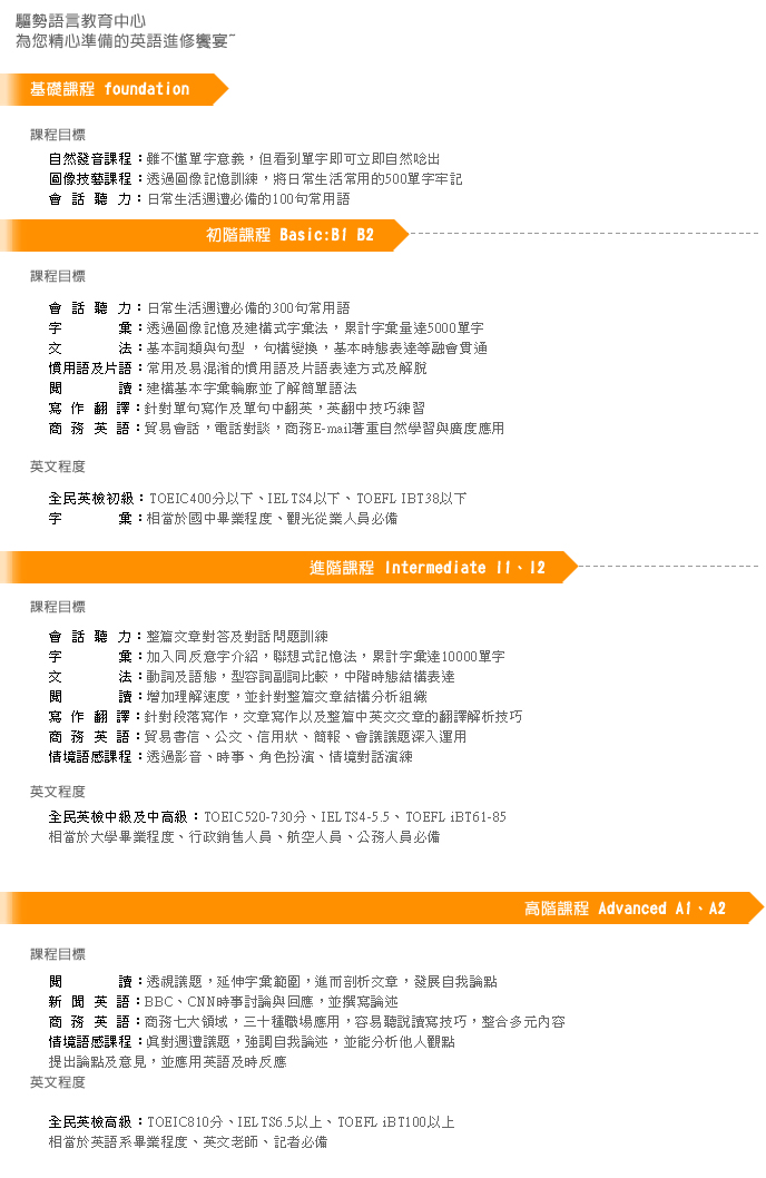 可較具信心在理解及表達英語於日常生活中。您可以進一步對自己在英語的流利度、文法理解力、文法及字彙以提升您的英文能力。 |